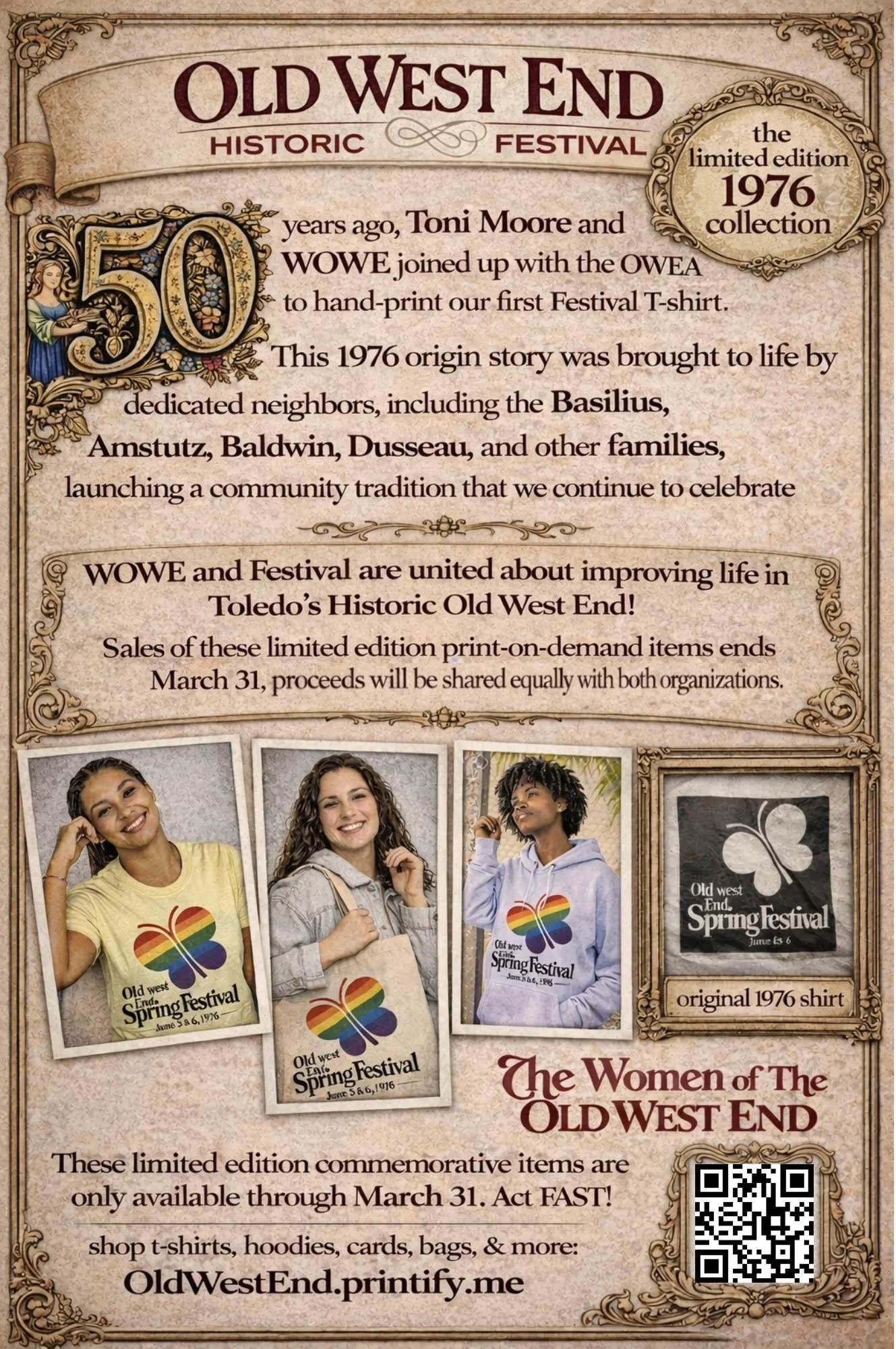 50 years ago, Toni Moore and WOWE joined up with the OWEA to hand-print our first Festival T-shirt.